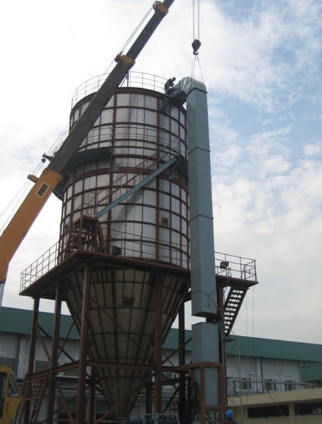 該套設備是專門為發酵液噴霧干燥而設計,要求產品具有生物活性。全套設備包括熱風系統、噴霧干燥塔、袋式除塵器等,是我司到目前為止在國外現場施工的最大噴霧干燥機。