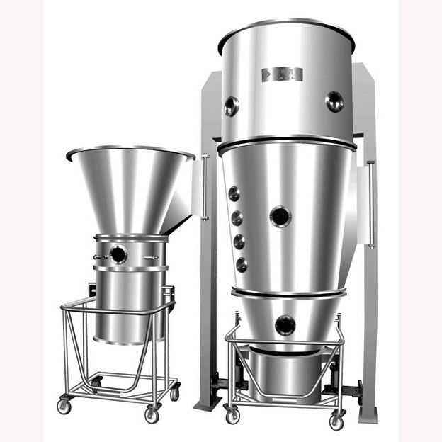 流化床噴霧造粒干燥機該過程是流態化技術、霧化技術和干燥技術三者有機結合。它是將霧化的料液噴灑到已流化的晶種床上,使晶種不斷長大和干燥,待長大到規定尺寸時排出器外。該設備體積小、生產能力大,能制造大顆粒。該設備的工業應用已日益增加。